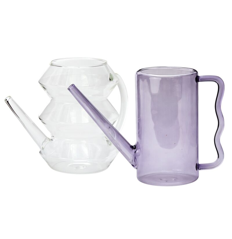 Arrosoir en verre transparent.