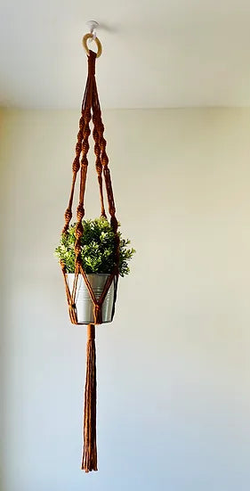 Cette charmante jardinière torsadée est créée avec du bois et du coton 100% naturel et recyclé. L'épaisseur de la corde de coton est de 3 mm. Ce modèle environ 40 pouces de longueur et il y a toujours la possibilité d'ajouter quelques pouces en vous procurant une rallonge également disponible sur mon site. La mesure du haut de l'anneau de bois jusqu'à la base de votre pot est d'environ 28 pouces. Un diamètre de 4 à 6 pouces pour le pot est idéal. Pour l'entretien, vous devez simplement nettoyer avec un linge humide. La jardinière doit être suspendue à l'intérieur seulement pour éviter que le coton s'abîme.