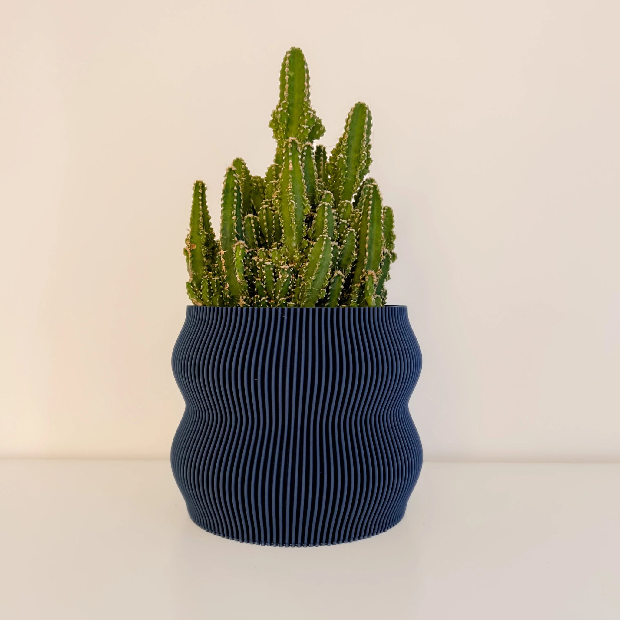 Cache-pot fabriqué avec du bioplastique à base maïs et de bois recyclé.